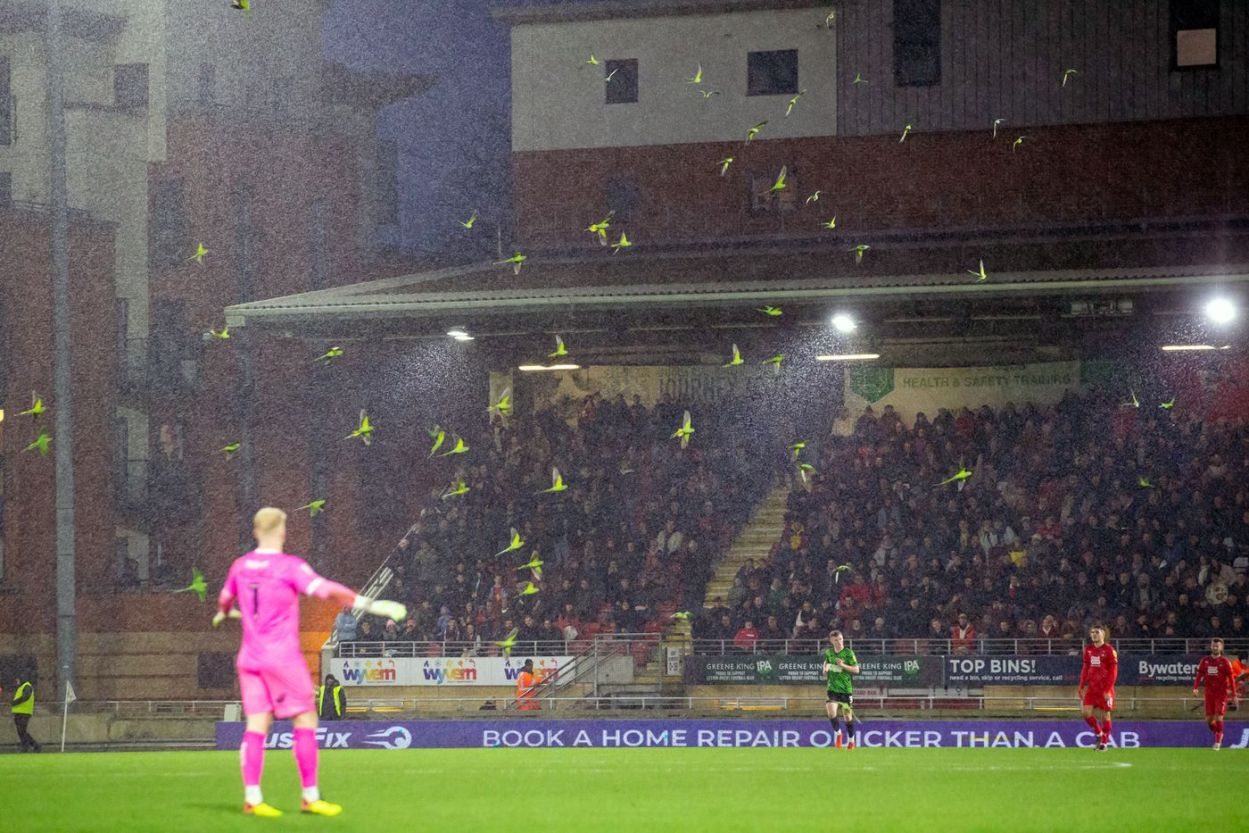 Almost immediately after Archie’s effort hit the back of the net, a flock of parakeets invaded Brisbane Road either seeking shelter from the swirling wind and rain, or as some kind of surreal celebration. It brought back memories of a game in the dark days of last season, at home to Port Vale I think, in which the height of entertainment was a fox running onto the pitch and dashing up the wing quicker than any O’s player managed all day accompanied by a previous visit by a smaller flock of the tropical birds.